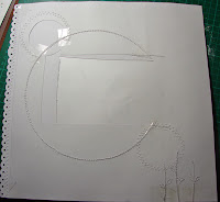 For the She Said layout, print a photo 5 x 7", and sand the edges. Trim 1cm off the right hand edge of the brown Basic Grey paper, then cut a hole from the paper from where the photo will be (Fig. 1 above), to use later on a card (ensure you make the hole smaller than the photo). Cut a 3" circle from the Skipping Stones paper offcuts, and a 2.5" circle from a Rain Showers paper offcut. Cut another hole from one edge of the 8" Flower Beds paper circle from where the photo will go, to use later (Fig. 2). Adhere the circles and photo to the page, then sew the edges of the circles on your sewing machine using a mixture of zigzag and straight stitches. Using the Threading Water punch on one edge of the Rain Showers paper, make a border for the page, and adhere then use a zigzag stitch along the inside edge. Next, use alcohol inks to colour the acrylic butterflies, fold up the wings for dimension, and adhere where desired (Fig. 18 below). Use a pencil to draw where you want the flower stems to go, and using white thread in your sewing machine, stitch the stems and leaves, pulling leftover threads to the back of the page and sticking down (Fig. 10). To make the flowers, fold the Green Tara flowers in half, and then pinch the middle of the flower into the shape, as in Fig. 11, and twist slightly. Use a strong glue to hold the flower in this shape, and leave to dry (Fig. 12).