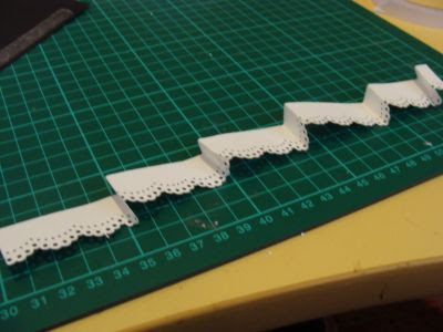Firstly i cut strips of cardstock or paper about 3cm wide and then using my Martha Stewart lace punch i punch along one side. So it looks like this....
