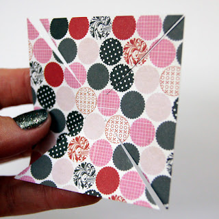 Cut a perfect square and measure in 4 centre points. For example this square measures 7 x 7cm and I measured in 3cm from each corner which left me with a 1 x 1cm space in the middle.