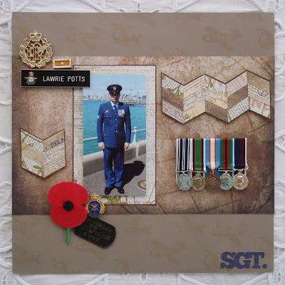 I have created two layouts for Anzac Day, the first about my great-grandfather and the second about my fiancé. Both are made using 7 Gypsies patterned papers.