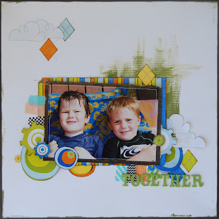 Scrapping the boys used to be a bit of a challenge as there were sooooo many gorgeous girl papers, but not many for the little rascals in our lives. Now, however, manufactures are producing some wonderful boyish ranges, and truly nothing says cars, trucks and zoom like Bo Bunny's On the Go range. This selection is so versatile and can be adapted to many styles. I chose to think outside the square a little on this rather than using the 'whole" papers, I cut them up which was more 'my thing' and created a layout using 'white' space and paint to co-ordinate with the range. I cut embellishments from the